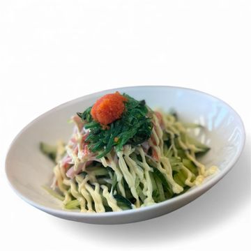 Cucumber and crabstick drizzled with mayo topped with caviar