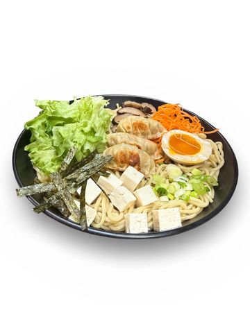 Dumplings of your choice served over ramen style noodles with a broth of light kimchi shoyu tare based topped with tofu,Ajitama egg and healthy veggies