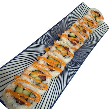 Prawn tempura and cucumber rolled together and covered with sweet chili sauce and drizzled with our homemade teriyaki sauce