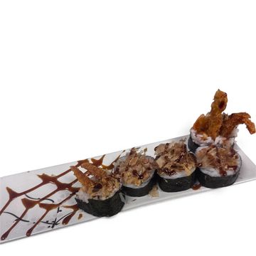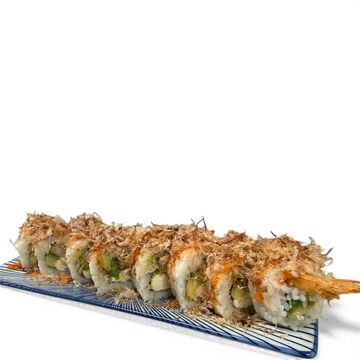 Crispy prawn tempura roll covered in a thin layer of avocado served with a teriyaki sauce (8 pieces)