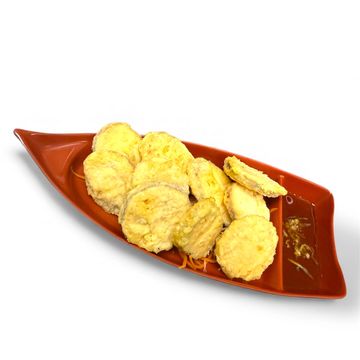 Deep fried coated tofu with radish/ginger mix with bonito and garnished with spring onions served with tempura sauce